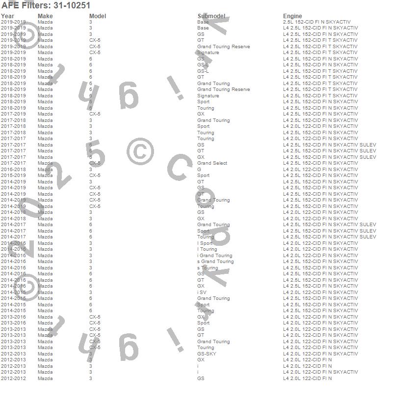 Below is an abreviated list of applications for the MagnumFLOW OE Replacement PRO DRY S Air Filter.