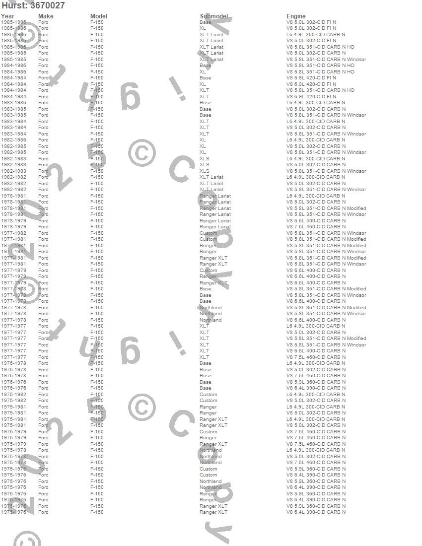 Below is an abreviated list of applications for the Mastershift 3-Speed Gear Shift Installation Kit.