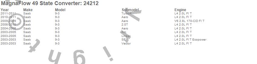 Below is an abreviated list of applications for the Direct Fit Catalytic Converter.