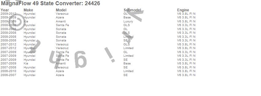 Below is an abreviated list of applications for the Direct Fit Catalytic Converter.