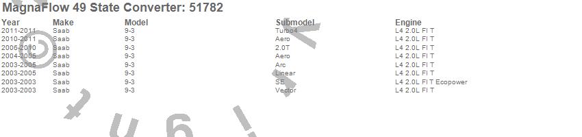 Below is an abreviated list of applications for the Direct Fit Catalytic Converter.