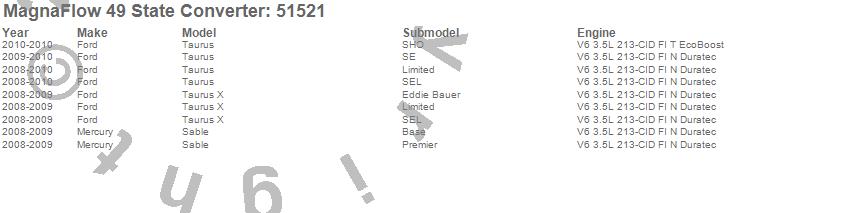 Below is an abreviated list of applications for the Direct Fit Catalytic Converter.