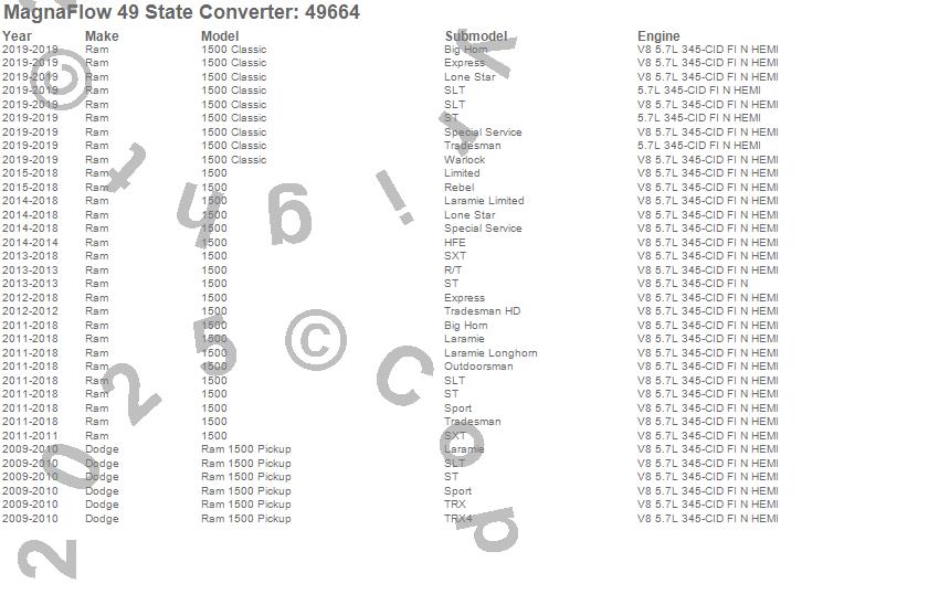 Below is an abreviated list of applications for the Direct Fit Catalytic Converter.