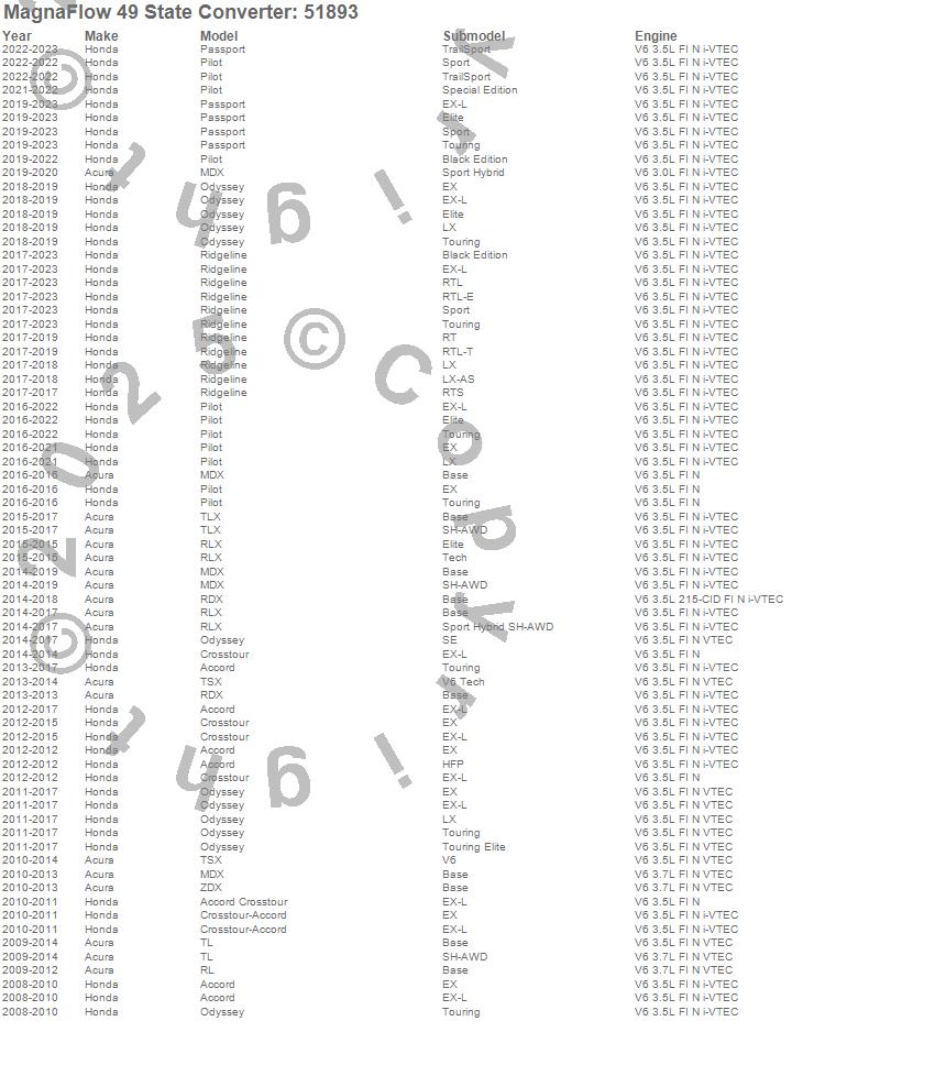 Below is an abreviated list of applications for the Direct Fit Catalytic Converter.