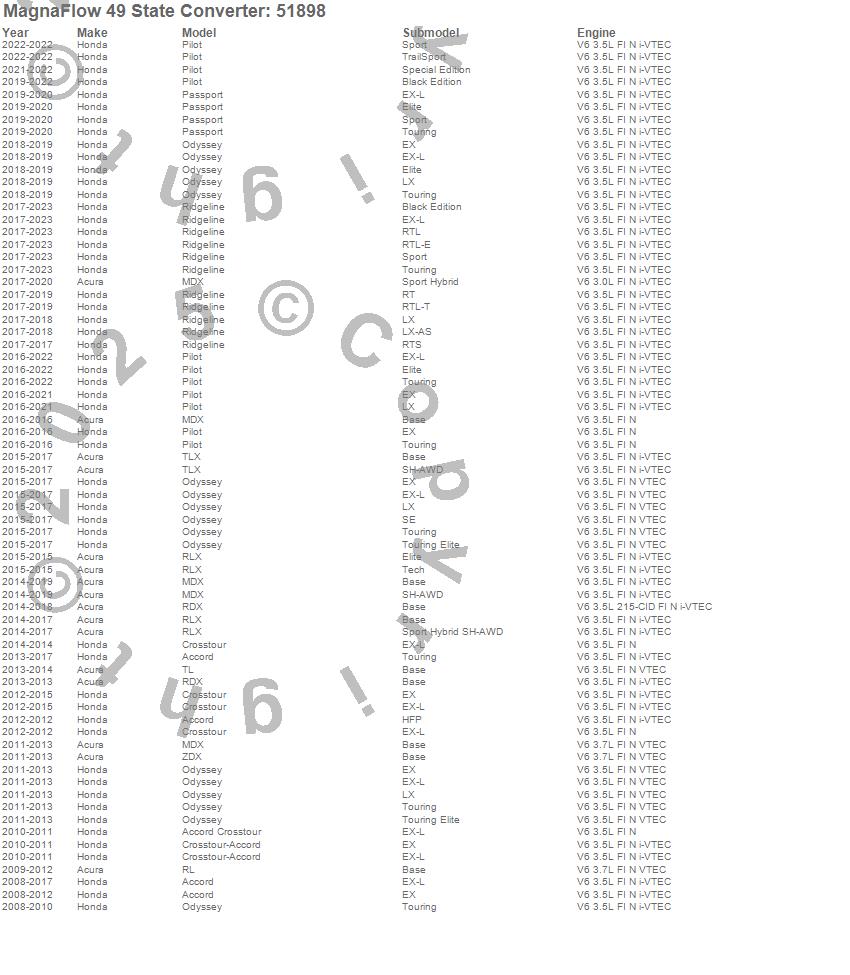 Below is an abreviated list of applications for the Direct Fit Catalytic Converter.