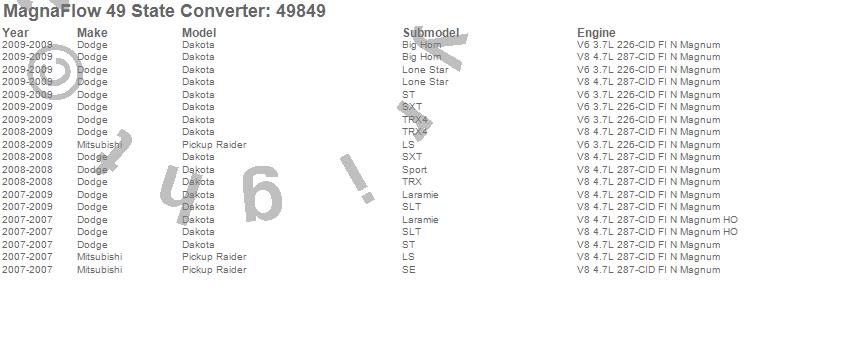 Below is an abreviated list of applications for the Direct Fit Catalytic Converter.