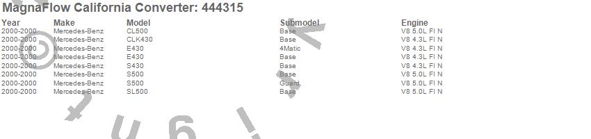 Below is an abreviated list of applications for the Direct Fit California OBDII Catalytic Converter.