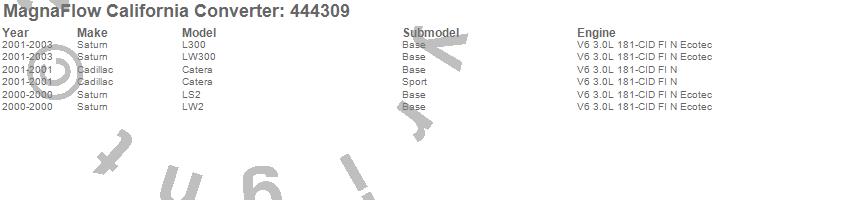 Below is an abreviated list of applications for the Direct Fit California OBDII Catalytic Converter.