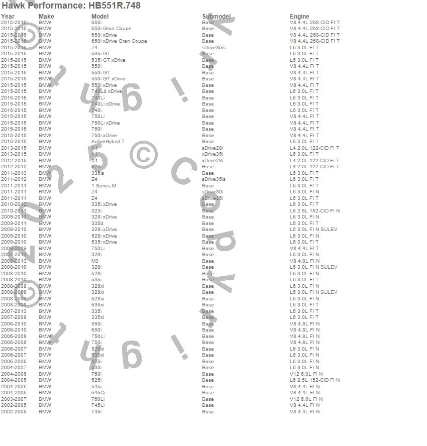 Hawk Performance Disc Brake Pad # HB551R.748 - Street Race w/0.748 Thickness