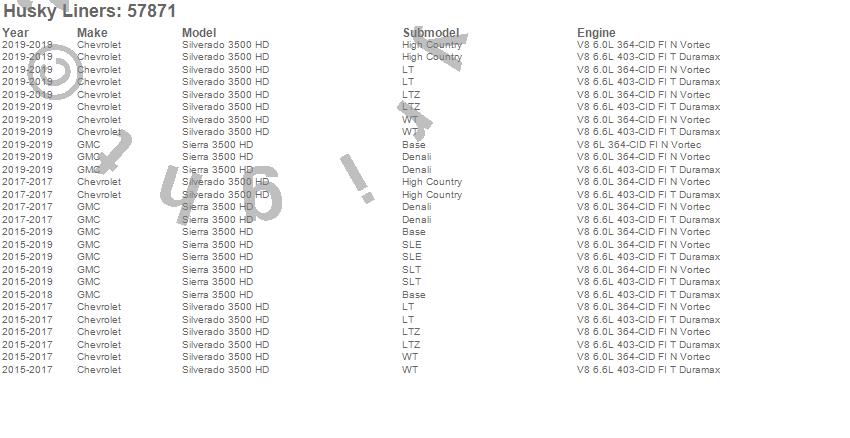 Below is an abreviated list of applications for the Custom Molded Mud Guards.