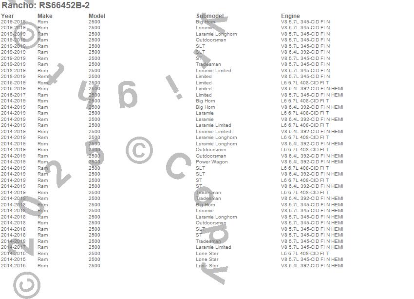 Below is an abreviated list of applications for the Front Lift Kit.2500, Ram, 2014 more…