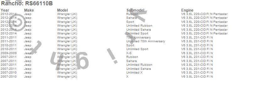 Below is an abreviated list of applications for the Primary Suspension System.