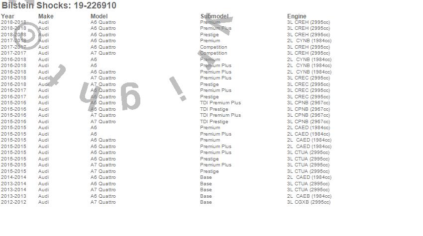 Below is an abreviated list of applications for the B4 Series OE Replacement Shock Absorber.