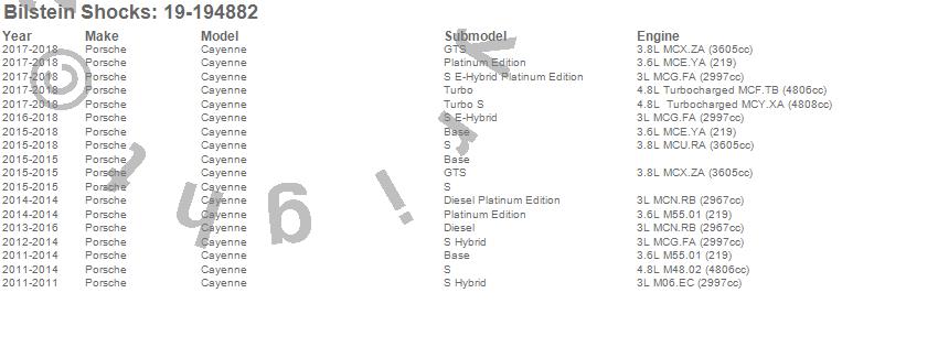 Below is an abreviated list of applications for the B4 Series OE Replacement Shock Absorber.