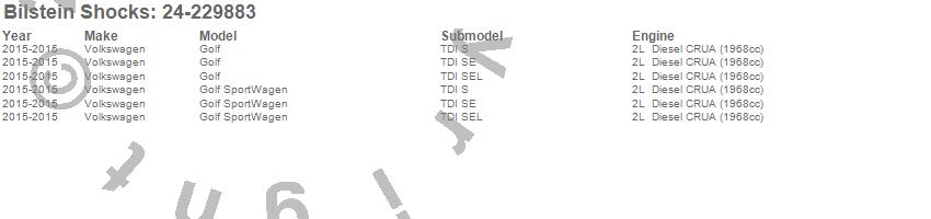 Below is an abreviated list of applications for the B6 Series HD Shock Absorber.