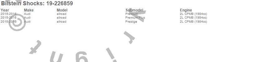 Below is an abreviated list of applications for the B4 Series OE Replacement Shock Absorber.