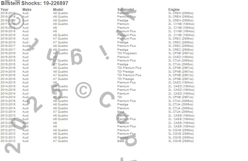 Below is an abreviated list of applications for the B4 Series OE Replacement Shock Absorber.