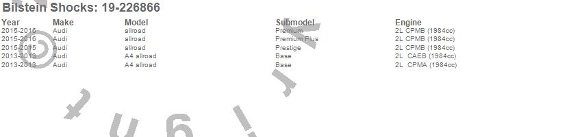 Below is an abreviated list of applications for the B4 Series OE Replacement Shock Absorber.