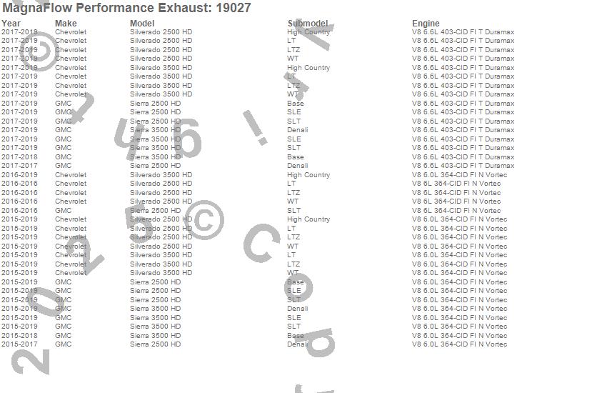 Below is an abreviated list of applications for the MF Series Performance Cat-Back Exhaust System.