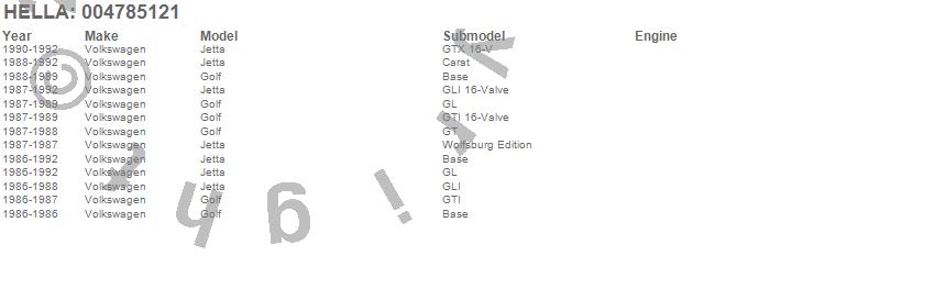 Hella Headlamp Assembly OE Replacement 004785121 Features: