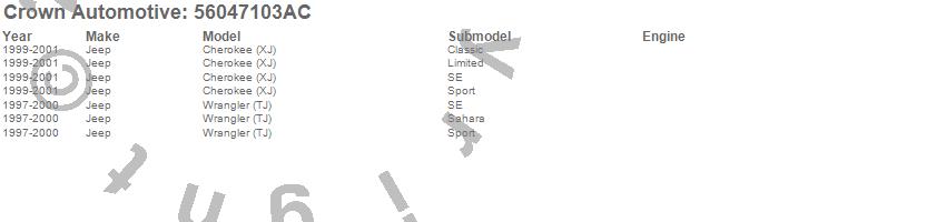 Crown Automotive is the premier manufacturer and distributor of quality replacement parts for Jeep® CJ™, Wrangler™, Cherokee™, Grand Cherokee™, Liberty™, and Commander™."From humble beginnings in 1963 in a small Boston storefront, Crown Automotive has consistently maintained its commitment to offering only quality parts and exceptional service. Today, with warehouses in Massachusetts, Georgia, Nevada, Spain, and the Czech Republic, totaling over 160,000 square feet, Crown Automotive continues to be the leader in quality replacement parts for Jeep® vehicles. With over 8,000 different parts in stock for Jeep® vehicles from 1942 on up, Crown has the largest stock of replacement parts for Jeep® vehicles, including factory-discontinued parts. In fact, many of the older Jeeps are still on (and off) the road thanks to Crown parts. The Crown line consists of axle, body, brake, clutch, cooling, driveline, electrical, engine, exhaust, fuel, steering, suspension, transmission and transfer case components. Crown Automotive also offers an exclusive line of component kits and accessory products. Because we know that Jeeps are driven harder than most other vehicles, we emphasize offering only quality parts. In fact, we test parts on Jeeps before distributing them to our dealers to insure that they meet our standards for quality. Crown also supports its entire line with a 12 month/12,000 mile warranty to insure our dealers and their customers of our commitment to offering quality parts. We know from experience that Jeep® owners would rather pay a little more for a good quality part that's backed by a strong guarantee. But we know that price is important as well. So, not only will you find Crown parts to be of exceptional quality, but you'll find them at a great price too.