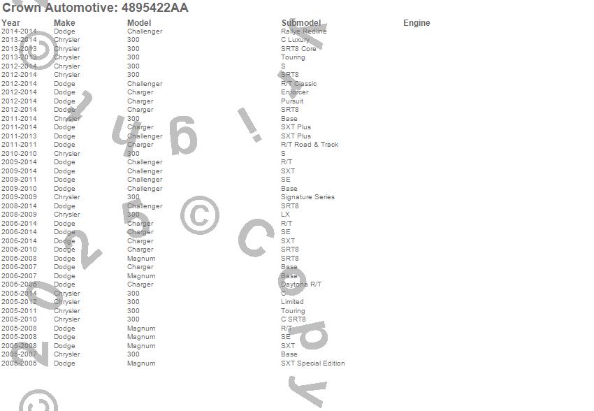 300, Challenger, Charger, Magnum, Chrysler, Dodge, 2014, 2013, 2012, 2011, 2010, 2009, 2008, 2007, 2006, 2005 more…