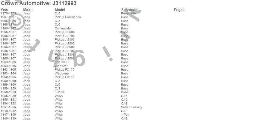 1-Ton Pickup, CJ-2A, CJ-3A, CJ-3B, CJ5, CJ6, Commando, FC150, FC170, FC170HD, Gladiator, J-2500, J-2600, J-2700, J-2800, J-3500, J-3600, J-3700, J-3800, M38 more…