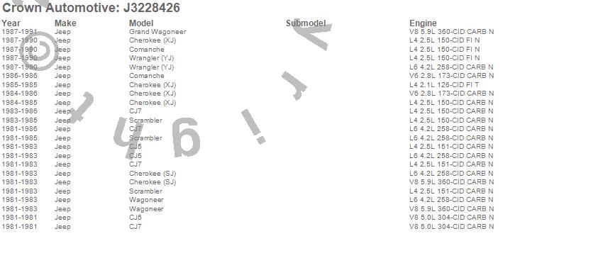 Cherokee (SJ), Cherokee (XJ), CJ5, CJ7, Comanche, Grand Wagoneer, Scrambler, Wagoneer, Wrangler (YJ), Jeep, 1991, 1990, 1989, 1988, 1987, 1986, 1985, 1984, 1983, 1982 more…