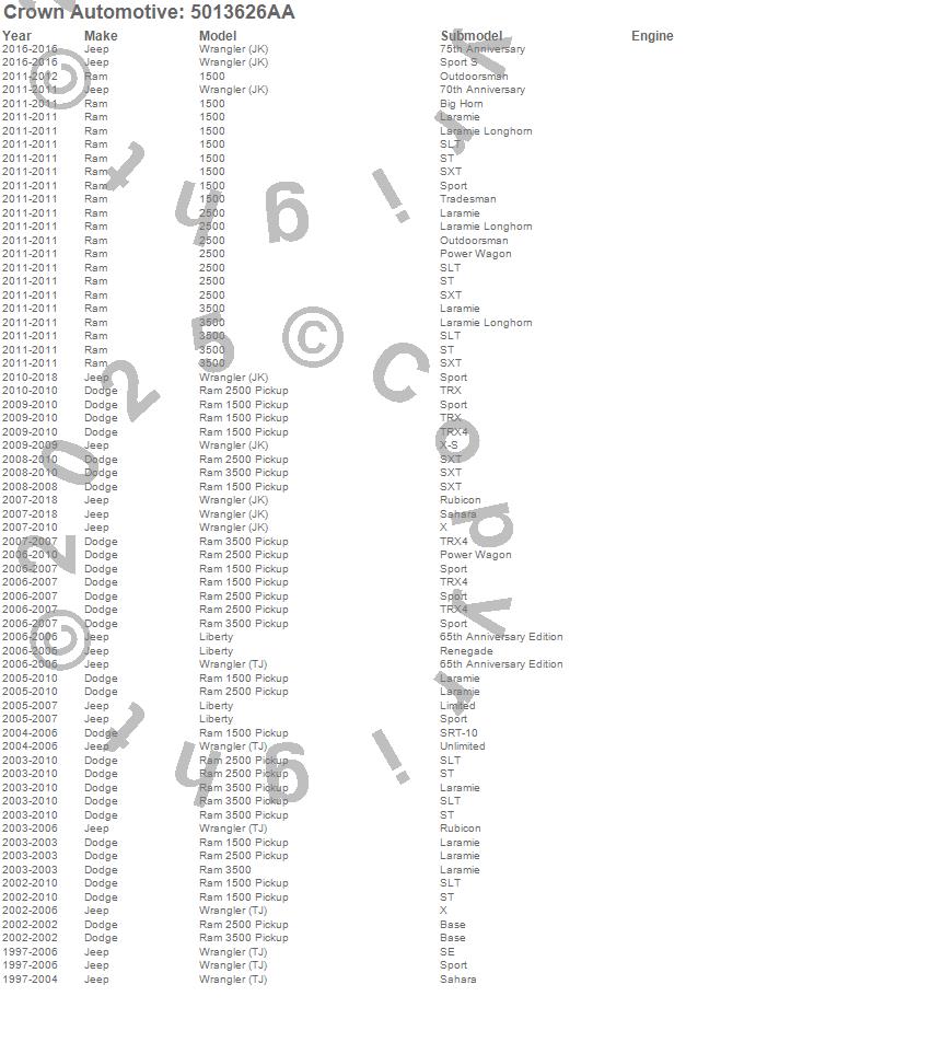 1500, 2500, 3500, Liberty, Ram 1500, Ram 2500, Ram 3500, Wrangler (JK), Wrangler (LJ), Wrangler (TJ), Dodge, Jeep, Ram, 2015, 2014, 2013, 2012, 2011, 2010, 2009 more…