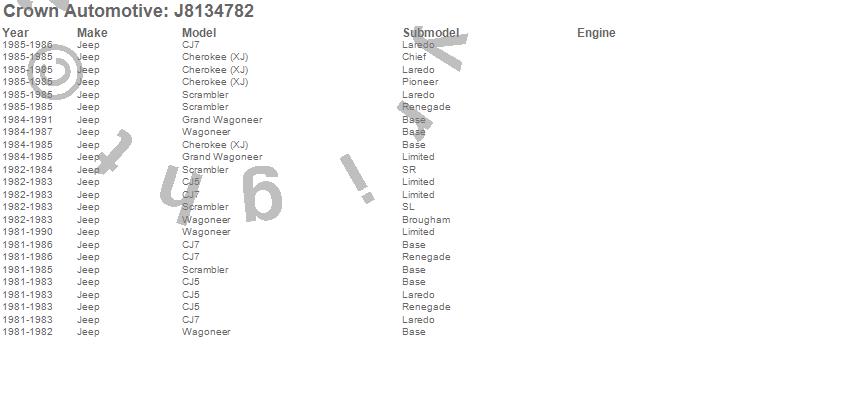 Crown Automotive is the premier manufacturer and distributor of quality replacement parts for Jeep® CJ™, Wrangler™, Cherokee™, Grand Cherokee™, Liberty™, and Commander™."From humble beginnings in 1963 in a small Boston storefront, Crown Automotive has consistently maintained its commitment to offering only quality parts and exceptional service. Today, with warehouses in Massachusetts, Georgia, Nevada, Spain, and the Czech Republic, totaling over 160,000 square feet, Crown Automotive continues to be the leader in quality replacement parts for Jeep® vehicles. With over 8,000 different parts in stock for Jeep® vehicles from 1942 on up, Crown has the largest stock of replacement parts for Jeep® vehicles, including factory-discontinued parts. In fact, many of the older Jeeps are still on (and off) the road thanks to Crown parts. The Crown line consists of axle, body, brake, clutch, cooling, driveline, electrical, engine, exhaust, fuel, steering, suspension, transmission and transfer case components. Crown Automotive also offers an exclusive line of component kits and accessory products. Because we know that Jeeps are driven harder than most other vehicles, we emphasize offering only quality parts. In fact, we test parts on Jeeps before distributing them to our dealers to insure that they meet our standards for quality. Crown also supports its entire line with a 12 month/12,000 mile warranty to insure our dealers and their customers of our commitment to offering quality parts. We know from experience that Jeep® owners would rather pay a little more for a good quality part that's backed by a strong guarantee. But we know that price is important as well. So, not only will you find Crown parts to be of exceptional quality, but you'll find them at a great price too.