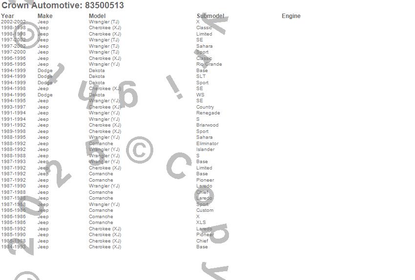 Cherokee (XJ), Comanche, Dakota, Wrangler (TJ), Wrangler (YJ), Dodge, Jeep, 2002, 2001, 2000, 1999, 1998, 1997, 1996, 1995, 1994, 1993, 1992, 1991, 1990 more…