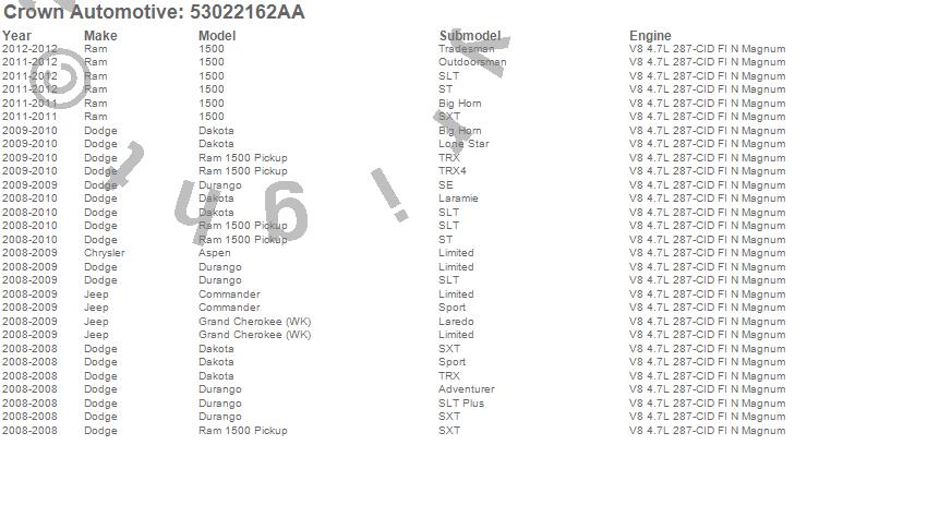 1500, Aspen, Commander, Dakota, Durango, Grand Cherokee (WK), Ram 1500, Chrysler, Dodge, Jeep, Ram, 2012, 2011, 2010, 2009, 2008 more…