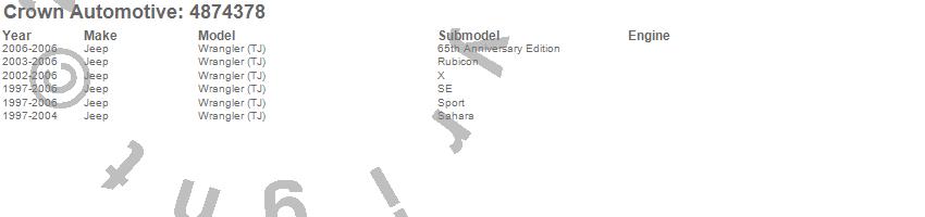 Crown Automotive is the premier manufacturer and distributor of quality replacement parts for Jeep® CJ™, Wrangler™, Cherokee™, Grand Cherokee™, Liberty™, and Commander™."From humble beginnings in 1963 in a small Boston storefront, Crown Automotive has consistently maintained its commitment to offering only quality parts and exceptional service. Today, with warehouses in Massachusetts, Georgia, Nevada, Spain, and the Czech Republic, totaling over 160,000 square feet, Crown Automotive continues to be the leader in quality replacement parts for Jeep® vehicles. With over 8,000 different parts in stock for Jeep® vehicles from 1942 on up, Crown has the largest stock of replacement parts for Jeep® vehicles, including factory-discontinued parts. In fact, many of the older Jeeps are still on (and off) the road thanks to Crown parts. The Crown line consists of axle, body, brake, clutch, cooling, driveline, electrical, engine, exhaust, fuel, steering, suspension, transmission and transfer case components. Crown Automotive also offers an exclusive line of component kits and accessory products. Because we know that Jeeps are driven harder than most other vehicles, we emphasize offering only quality parts. In fact, we test parts on Jeeps before distributing them to our dealers to insure that they meet our standards for quality. Crown also supports its entire line with a 12 month/12,000 mile warranty to insure our dealers and their customers of our commitment to offering quality parts. We know from experience that Jeep® owners would rather pay a little more for a good quality part that's backed by a strong guarantee. But we know that price is important as well. So, not only will you find Crown parts to be of exceptional quality, but you'll find them at a great price too.