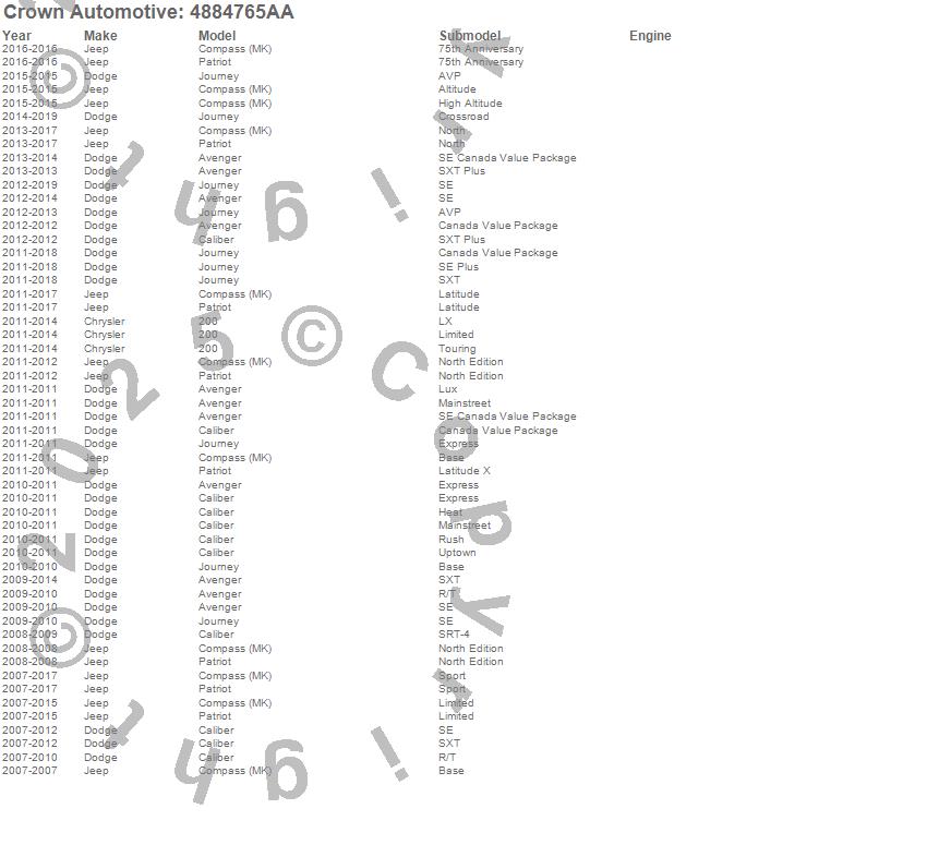 200, Avenger, Caliber, Compass, Journey, Patriot, Chrysler, Dodge, Jeep, 2015, 2014, 2013, 2012, 2011, 2010, 2009, 2008, 2007 more…