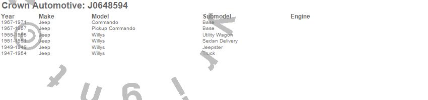 Crown Automotive is the premier manufacturer and distributor of quality replacement parts for Jeep® CJ™, Wrangler™, Cherokee™, Grand Cherokee™, Liberty™, and Commander™."From humble beginnings in 1963 in a small Boston storefront, Crown Automotive has consistently maintained its commitment to offering only quality parts and exceptional service. Today, with warehouses in Massachusetts, Georgia, Nevada, Spain, and the Czech Republic, totaling over 160,000 square feet, Crown Automotive continues to be the leader in quality replacement parts for Jeep® vehicles. With over 8,000 different parts in stock for Jeep® vehicles from 1942 on up, Crown has the largest stock of replacement parts for Jeep® vehicles, including factory-discontinued parts. In fact, many of the older Jeeps are still on (and off) the road thanks to Crown parts. The Crown line consists of axle, body, brake, clutch, cooling, driveline, electrical, engine, exhaust, fuel, steering, suspension, transmission and transfer case components. Crown Automotive also offers an exclusive line of component kits and accessory products. Because we know that Jeeps are driven harder than most other vehicles, we emphasize offering only quality parts. In fact, we test parts on Jeeps before distributing them to our dealers to insure that they meet our standards for quality. Crown also supports its entire line with a 12 month/12,000 mile warranty to insure our dealers and their customers of our commitment to offering quality parts. We know from experience that Jeep® owners would rather pay a little more for a good quality part that's backed by a strong guarantee. But we know that price is important as well. So, not only will you find Crown parts to be of exceptional quality, but you'll find them at a great price too.