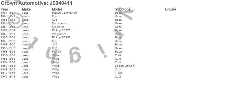 1-Ton Pickup, CJ-2A, CJ-3A, CJ-3B, CJ5, CJ6, Commando, FC150, FC170, Gladiator, J-2500, M38, M38A1, Sedan Delivery, Wagoneer, Jeep, 1971, 1970, 1969, 1968 more…