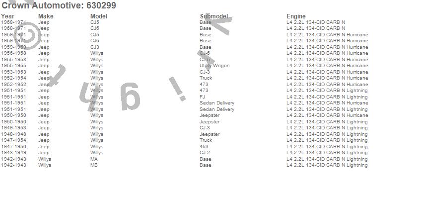 Crown Automotive is the premier manufacturer and distributor of quality replacement parts for Jeep® CJ™, Wrangler™, Cherokee™, Grand Cherokee™, Liberty™, and Commander™."From humble beginnings in 1963 in a small Boston storefront, Crown Automotive has consistently maintained its commitment to offering only quality parts and exceptional service. Today, with warehouses in Massachusetts, Georgia, Nevada, Spain, and the Czech Republic, totaling over 160,000 square feet, Crown Automotive continues to be the leader in quality replacement parts for Jeep® vehicles. With over 8,000 different parts in stock for Jeep® vehicles from 1942 on up, Crown has the largest stock of replacement parts for Jeep® vehicles, including factory-discontinued parts. In fact, many of the older Jeeps are still on (and off) the road thanks to Crown parts. The Crown line consists of axle, body, brake, clutch, cooling, driveline, electrical, engine, exhaust, fuel, steering, suspension, transmission and transfer case components. Crown Automotive also offers an exclusive line of component kits and accessory products. Because we know that Jeeps are driven harder than most other vehicles, we emphasize offering only quality parts. In fact, we test parts on Jeeps before distributing them to our dealers to insure that they meet our standards for quality. Crown also supports its entire line with a 12 month/12,000 mile warranty to insure our dealers and their customers of our commitment to offering quality parts. We know from experience that Jeep® owners would rather pay a little more for a good quality part that's backed by a strong guarantee. But we know that price is important as well. So, not only will you find Crown parts to be of exceptional quality, but you'll find them at a great price too.