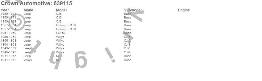 Crown Automotive is the premier manufacturer and distributor of quality replacement parts for Jeep® CJ™, Wrangler™, Cherokee™, Grand Cherokee™, Liberty™, and Commander™."From humble beginnings in 1963 in a small Boston storefront, Crown Automotive has consistently maintained its commitment to offering only quality parts and exceptional service. Today, with warehouses in Massachusetts, Georgia, Nevada, Spain, and the Czech Republic, totaling over 160,000 square feet, Crown Automotive continues to be the leader in quality replacement parts for Jeep® vehicles. With over 8,000 different parts in stock for Jeep® vehicles from 1942 on up, Crown has the largest stock of replacement parts for Jeep® vehicles, including factory-discontinued parts. In fact, many of the older Jeeps are still on (and off) the road thanks to Crown parts. The Crown line consists of axle, body, brake, clutch, cooling, driveline, electrical, engine, exhaust, fuel, steering, suspension, transmission and transfer case components. Crown Automotive also offers an exclusive line of component kits and accessory products. Because we know that Jeeps are driven harder than most other vehicles, we emphasize offering only quality parts. In fact, we test parts on Jeeps before distributing them to our dealers to insure that they meet our standards for quality. Crown also supports its entire line with a 12 month/12,000 mile warranty to insure our dealers and their customers of our commitment to offering quality parts. We know from experience that Jeep® owners would rather pay a little more for a good quality part that's backed by a strong guarantee. But we know that price is important as well. So, not only will you find Crown parts to be of exceptional quality, but you'll find them at a great price too.