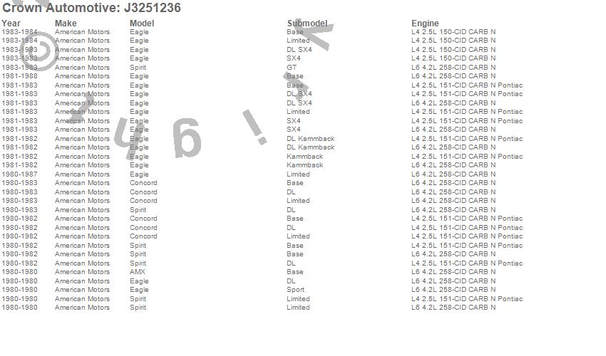 Crown Automotive is the premier manufacturer and distributor of quality replacement parts for Jeep® CJ™, Wrangler™, Cherokee™, Grand Cherokee™, Liberty™, and Commander™."From humble beginnings in 1963 in a small Boston storefront, Crown Automotive has consistently maintained its commitment to offering only quality parts and exceptional service. Today, with warehouses in Massachusetts, Georgia, Nevada, Spain, and the Czech Republic, totaling over 160,000 square feet, Crown Automotive continues to be the leader in quality replacement parts for Jeep® vehicles. With over 8,000 different parts in stock for Jeep® vehicles from 1942 on up, Crown has the largest stock of replacement parts for Jeep® vehicles, including factory-discontinued parts. In fact, many of the older Jeeps are still on (and off) the road thanks to Crown parts. The Crown line consists of axle, body, brake, clutch, cooling, driveline, electrical, engine, exhaust, fuel, steering, suspension, transmission and transfer case components. Crown Automotive also offers an exclusive line of component kits and accessory products. Because we know that Jeeps are driven harder than most other vehicles, we emphasize offering only quality parts. In fact, we test parts on Jeeps before distributing them to our dealers to insure that they meet our standards for quality. Crown also supports its entire line with a 12 month/12,000 mile warranty to insure our dealers and their customers of our commitment to offering quality parts. We know from experience that Jeep® owners would rather pay a little more for a good quality part that's backed by a strong guarantee. But we know that price is important as well. So, not only will you find Crown parts to be of exceptional quality, but you'll find them at a great price too.
