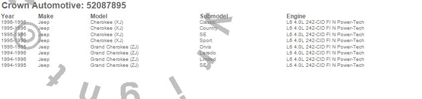 Crown Automotive is the premier manufacturer and distributor of quality replacement parts for Jeep® CJ™, Wrangler™, Cherokee™, Grand Cherokee™, Liberty™, and Commander™."From humble beginnings in 1963 in a small Boston storefront, Crown Automotive has consistently maintained its commitment to offering only quality parts and exceptional service. Today, with warehouses in Massachusetts, Georgia, Nevada, Spain, and the Czech Republic, totaling over 160,000 square feet, Crown Automotive continues to be the leader in quality replacement parts for Jeep® vehicles. With over 8,000 different parts in stock for Jeep® vehicles from 1942 on up, Crown has the largest stock of replacement parts for Jeep® vehicles, including factory-discontinued parts. In fact, many of the older Jeeps are still on (and off) the road thanks to Crown parts. The Crown line consists of axle, body, brake, clutch, cooling, driveline, electrical, engine, exhaust, fuel, steering, suspension, transmission and transfer case components. Crown Automotive also offers an exclusive line of component kits and accessory products. Because we know that Jeeps are driven harder than most other vehicles, we emphasize offering only quality parts. In fact, we test parts on Jeeps before distributing them to our dealers to insure that they meet our standards for quality. Crown also supports its entire line with a 12 month/12,000 mile warranty to insure our dealers and their customers of our commitment to offering quality parts. We know from experience that Jeep® owners would rather pay a little more for a good quality part that's backed by a strong guarantee. But we know that price is important as well. So, not only will you find Crown parts to be of exceptional quality, but you'll find them at a great price too.