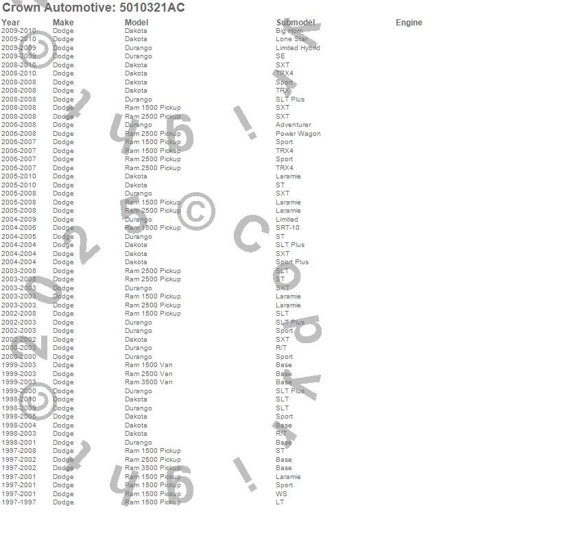Dakota, Durango, Ram 1500, Ram 1500 Van, Ram 2500, Ram 2500 Van, Ram 3500, Ram 3500 Van, Dodge, 2010, 2009, 2008, 2007, 2006, 2005, 2004, 2003, 2002, 2001, 2000 more…