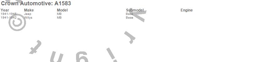 Crown Automotive is the premier manufacturer and distributor of quality replacement parts for Jeep® CJ™, Wrangler™, Cherokee™, Grand Cherokee™, Liberty™, and Commander™."From humble beginnings in 1963 in a small Boston storefront, Crown Automotive has consistently maintained its commitment to offering only quality parts and exceptional service. Today, with warehouses in Massachusetts, Georgia, Nevada, Spain, and the Czech Republic, totaling over 160,000 square feet, Crown Automotive continues to be the leader in quality replacement parts for Jeep® vehicles. With over 8,000 different parts in stock for Jeep® vehicles from 1942 on up, Crown has the largest stock of replacement parts for Jeep® vehicles, including factory-discontinued parts. In fact, many of the older Jeeps are still on (and off) the road thanks to Crown parts. The Crown line consists of axle, body, brake, clutch, cooling, driveline, electrical, engine, exhaust, fuel, steering, suspension, transmission and transfer case components. Crown Automotive also offers an exclusive line of component kits and accessory products. Because we know that Jeeps are driven harder than most other vehicles, we emphasize offering only quality parts. In fact, we test parts on Jeeps before distributing them to our dealers to insure that they meet our standards for quality. Crown also supports its entire line with a 12 month/12,000 mile warranty to insure our dealers and their customers of our commitment to offering quality parts. We know from experience that Jeep® owners would rather pay a little more for a good quality part that's backed by a strong guarantee. But we know that price is important as well. So, not only will you find Crown parts to be of exceptional quality, but you'll find them at a great price too.