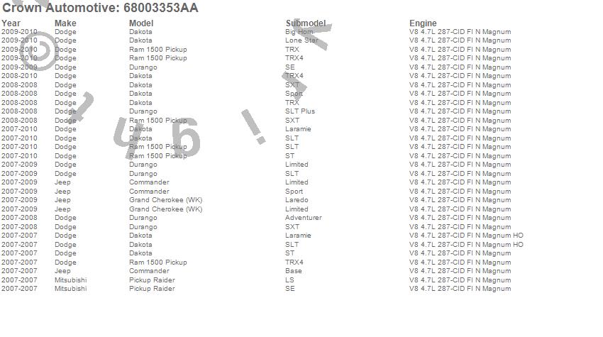 Commander, Dakota, Durango, Grand Cherokee (WK), Raider, Ram 1500, Dodge, Jeep, Mitsubishi, 2010, 2009, 2008, 2007 more…