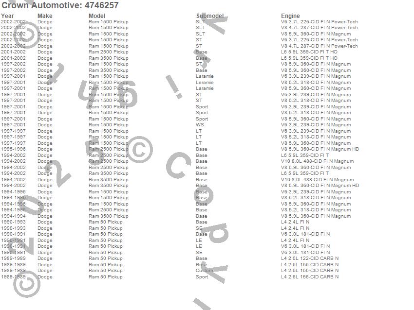 Ram 1500, Ram 2500, Ram 3500, Ram 50 Pickup, Dodge, 2002, 2001, 2000, 1999, 1998, 1997, 1996, 1995, 1994, 1993, 1992, 1991, 1990, 1989 more…