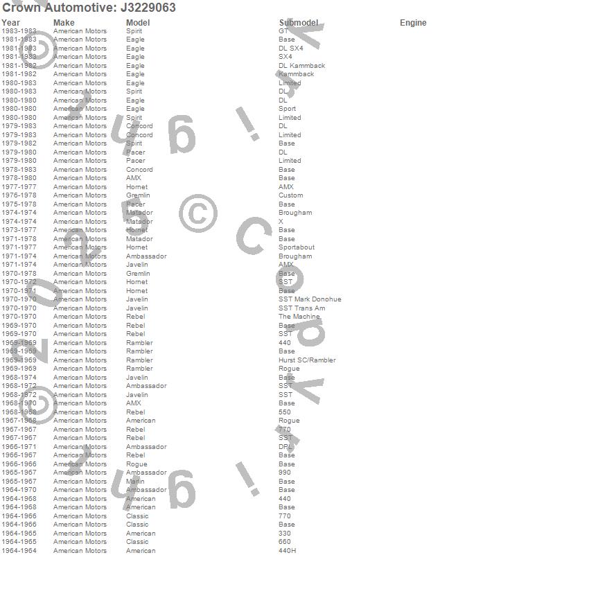 Ambassador, American, AMX, Classic, Concord, Eagle, Gremlin, Hornet, Javelin, Marlin, Matador, Pacer, Rambler, Rebel, Rogue, Spirit, American Motors, 1983, 1982, 1981 more…