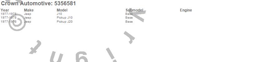 Crown Automotive is the premier manufacturer and distributor of quality replacement parts for Jeep® CJ™, Wrangler™, Cherokee™, Grand Cherokee™, Liberty™, and Commander™."From humble beginnings in 1963 in a small Boston storefront, Crown Automotive has consistently maintained its commitment to offering only quality parts and exceptional service. Today, with warehouses in Massachusetts, Georgia, Nevada, Spain, and the Czech Republic, totaling over 160,000 square feet, Crown Automotive continues to be the leader in quality replacement parts for Jeep® vehicles. With over 8,000 different parts in stock for Jeep® vehicles from 1942 on up, Crown has the largest stock of replacement parts for Jeep® vehicles, including factory-discontinued parts. In fact, many of the older Jeeps are still on (and off) the road thanks to Crown parts. The Crown line consists of axle, body, brake, clutch, cooling, driveline, electrical, engine, exhaust, fuel, steering, suspension, transmission and transfer case components. Crown Automotive also offers an exclusive line of component kits and accessory products. Because we know that Jeeps are driven harder than most other vehicles, we emphasize offering only quality parts. In fact, we test parts on Jeeps before distributing them to our dealers to insure that they meet our standards for quality. Crown also supports its entire line with a 12 month/12,000 mile warranty to insure our dealers and their customers of our commitment to offering quality parts. We know from experience that Jeep® owners would rather pay a little more for a good quality part that's backed by a strong guarantee. But we know that price is important as well. So, not only will you find Crown parts to be of exceptional quality, but you'll find them at a great price too.