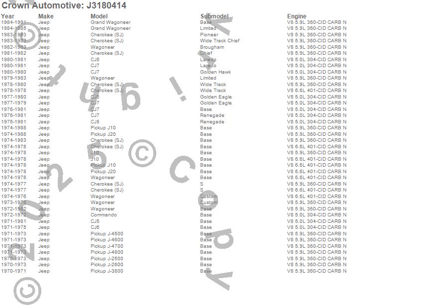 Cherokee (SJ), CJ5, CJ6, CJ7, Grand Wagoneer, J-2500, J-2600, J-3800, J-4500, J-4600, J-4700, J-4800, J10, J20, Jeepster, Wagoneer, Jeep, 1991, 1990, 1989 more…