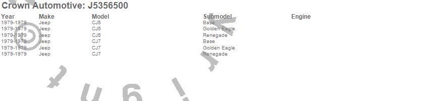 Crown Automotive is the premier manufacturer and distributor of quality replacement parts for Jeep® CJ™, Wrangler™, Cherokee™, Grand Cherokee™, Liberty™, and Commander™."From humble beginnings in 1963 in a small Boston storefront, Crown Automotive has consistently maintained its commitment to offering only quality parts and exceptional service. Today, with warehouses in Massachusetts, Georgia, Nevada, Spain, and the Czech Republic, totaling over 160,000 square feet, Crown Automotive continues to be the leader in quality replacement parts for Jeep® vehicles. With over 8,000 different parts in stock for Jeep® vehicles from 1942 on up, Crown has the largest stock of replacement parts for Jeep® vehicles, including factory-discontinued parts. In fact, many of the older Jeeps are still on (and off) the road thanks to Crown parts. The Crown line consists of axle, body, brake, clutch, cooling, driveline, electrical, engine, exhaust, fuel, steering, suspension, transmission and transfer case components. Crown Automotive also offers an exclusive line of component kits and accessory products. Because we know that Jeeps are driven harder than most other vehicles, we emphasize offering only quality parts. In fact, we test parts on Jeeps before distributing them to our dealers to insure that they meet our standards for quality. Crown also supports its entire line with a 12 month/12,000 mile warranty to insure our dealers and their customers of our commitment to offering quality parts. We know from experience that Jeep® owners would rather pay a little more for a good quality part that's backed by a strong guarantee. But we know that price is important as well. So, not only will you find Crown parts to be of exceptional quality, but you'll find them at a great price too.