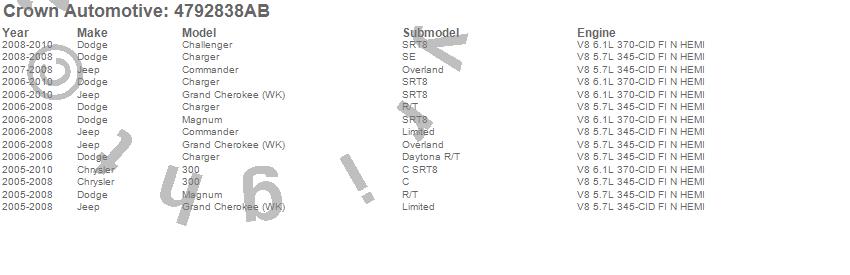 300, Challenger, Charger, Commander, Grand Cherokee (WK), Magnum, Chrysler, Dodge, Jeep, 2010, 2009, 2008, 2007, 2006, 2005 more…