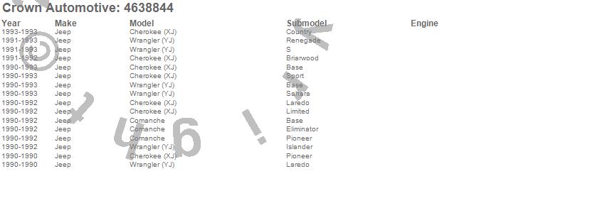 Crown Automotive is the premier manufacturer and distributor of quality replacement parts for Jeep® CJ™, Wrangler™, Cherokee™, Grand Cherokee™, Liberty™, and Commander™."From humble beginnings in 1963 in a small Boston storefront, Crown Automotive has consistently maintained its commitment to offering only quality parts and exceptional service. Today, with warehouses in Massachusetts, Georgia, Nevada, Spain, and the Czech Republic, totaling over 160,000 square feet, Crown Automotive continues to be the leader in quality replacement parts for Jeep® vehicles. With over 8,000 different parts in stock for Jeep® vehicles from 1942 on up, Crown has the largest stock of replacement parts for Jeep® vehicles, including factory-discontinued parts. In fact, many of the older Jeeps are still on (and off) the road thanks to Crown parts. The Crown line consists of axle, body, brake, clutch, cooling, driveline, electrical, engine, exhaust, fuel, steering, suspension, transmission and transfer case components. Crown Automotive also offers an exclusive line of component kits and accessory products. Because we know that Jeeps are driven harder than most other vehicles, we emphasize offering only quality parts. In fact, we test parts on Jeeps before distributing them to our dealers to insure that they meet our standards for quality. Crown also supports its entire line with a 12 month/12,000 mile warranty to insure our dealers and their customers of our commitment to offering quality parts. We know from experience that Jeep® owners would rather pay a little more for a good quality part that's backed by a strong guarantee. But we know that price is important as well. So, not only will you find Crown parts to be of exceptional quality, but you'll find them at a great price too.